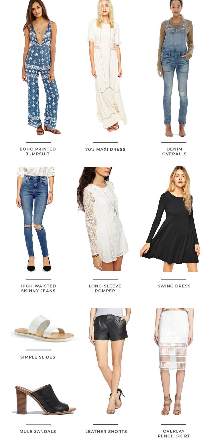 It’s that time of year, friends. Time to put away your puffy coats, your gloves and beanies, and start filling your closet with the good stuff. Dresses, ripped denim, floral prints, rompers. chunky sandals, cut-off shorts – all of my favorite things just in time for my favorite seasons, spring and summer! I have to say, I’m particularly excited about this year’s spring trends. While the 70s seem to come back every year around this time, it seems like they’re truly in full force this year. Not just subtle details like flared denim, but full on maxis with sleeves, printed jumpsuits, mule sandals and more. All of it makes me SO happy.